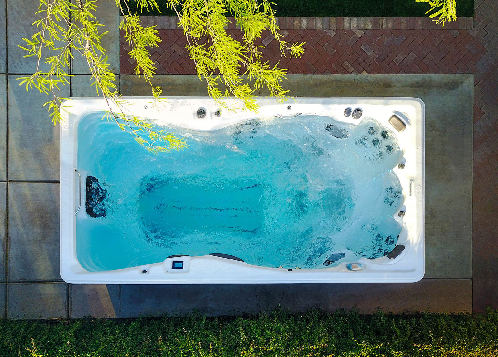 Create your backyard sanctuary with the space-conscious H2X 12 swim spa. Perfect for small backyards, this 12-foot swim spa brings home the benefits of water exercise, relaxation, and family fun. Premium massage jets, calming waterfalls, and LED lighting create an inviting space.